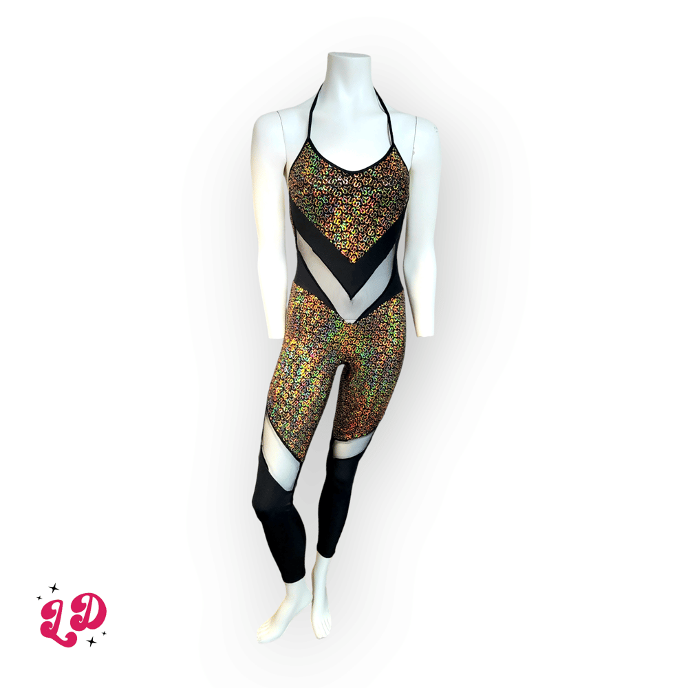 Make a bold statement with this striking mesh cutout spandex catsuit. -- The Remix combines a deeper mesh panel -- with sleek solid color blocking, this one-piece design is crafted to flatter your shape while offering comfort and flexibility. The halter tie neckline and daring low back add an extra touch of allure, Taking your festival look to the next level with this stunning catsuit!