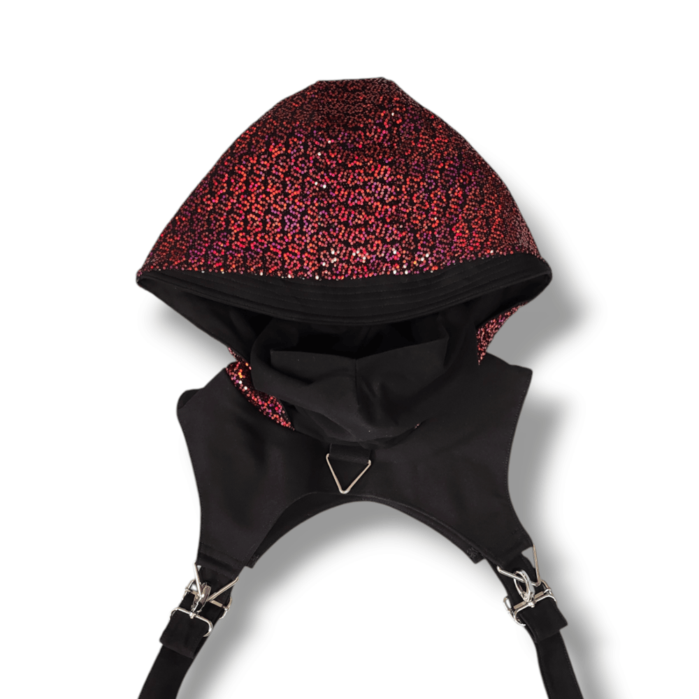 Our Ninja Hoods are the perfect combination of style, versatility, and FUNction. Handmade to order, these hoods feature size-adjustable straps under the arms, ensuring a comfortable and flexible fit for any body type. Whether you're rocking it at a festival or adding a unique edge to your everyday look, the Ninja Hood is designed to help you stand out.