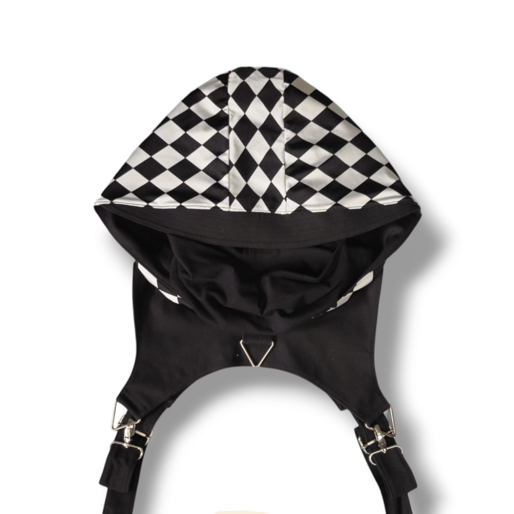 Our Ninja Hoods are the perfect combination of style, versatility, and FUNction. Handmade to order, these hoods feature size-adjustable straps under the arms, ensuring a comfortable and flexible fit for any body type. Whether you're rocking it at a festival or adding a unique edge to your everyday look, the Ninja Hood is designed to help you stand out.