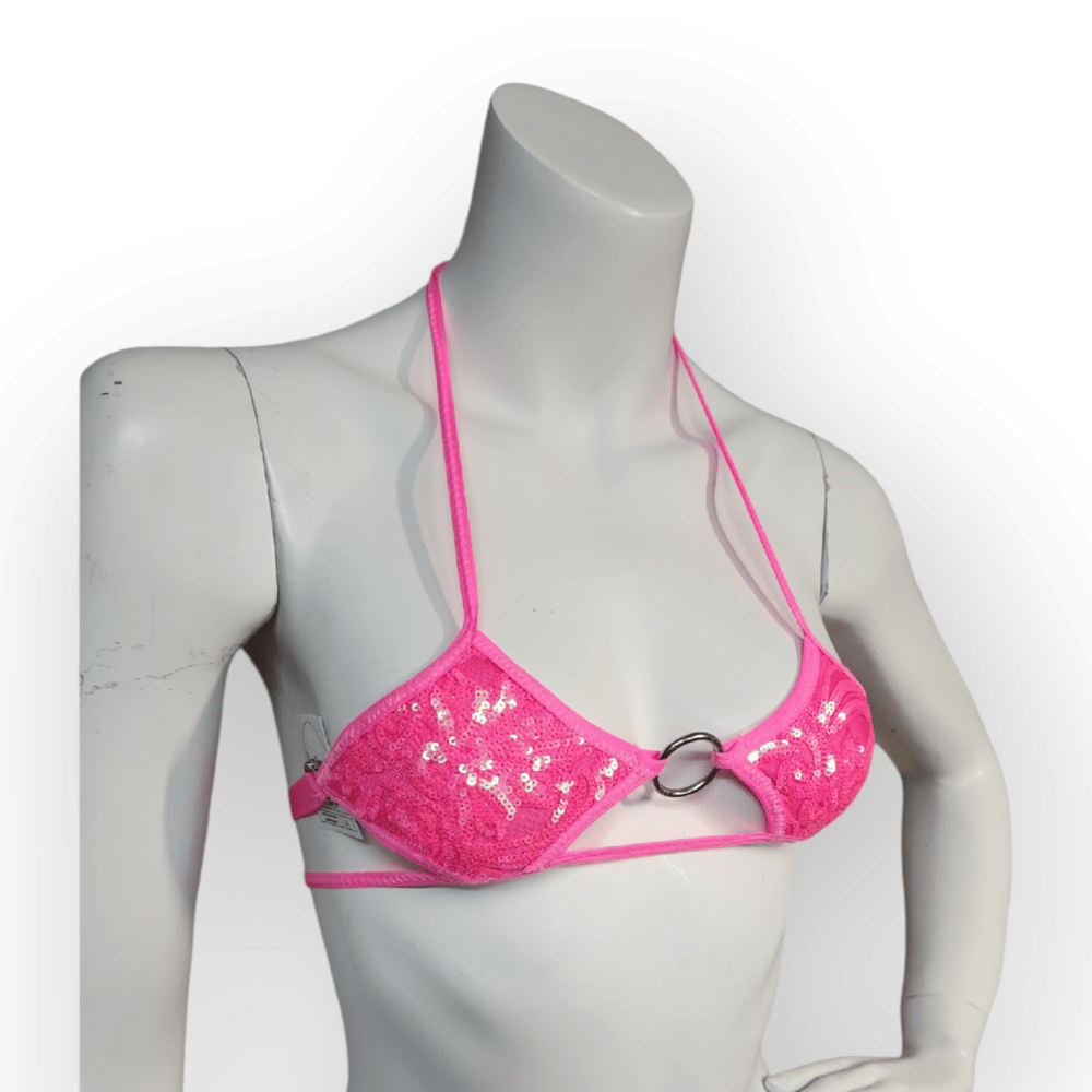 LA Irid Hot Pink Sequin Micro Bikini Top