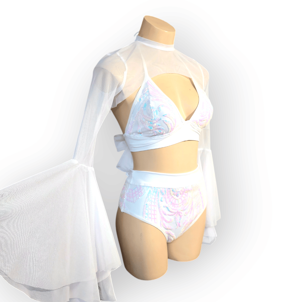 This super crop top features elongated bell sleeves that extend in the back for ultimate flow, giving you full movement without sacrificing the drama. Layer it or wear it bold—either way, you’re serving looks!