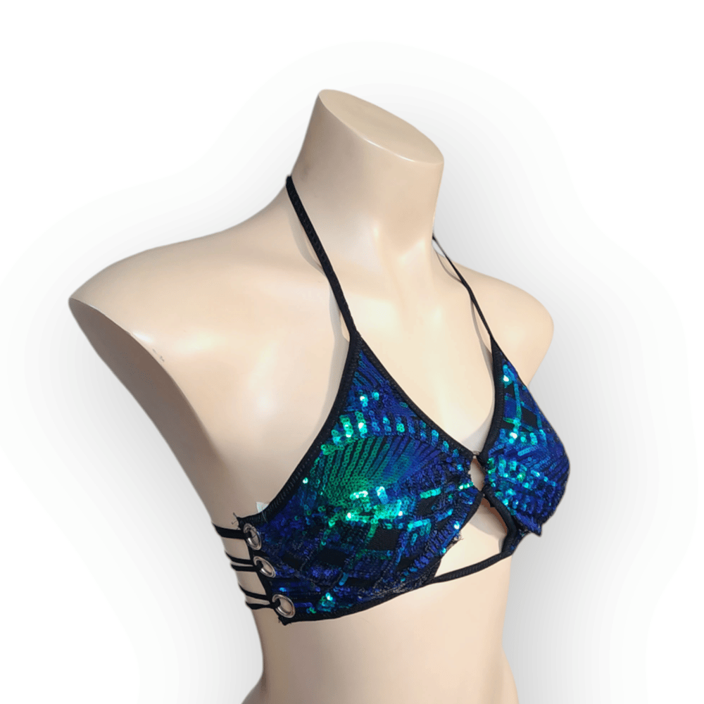 Shine bright with our handmade sequin halter top! Each piece is made to order, ensuring a unique touch with every creation.