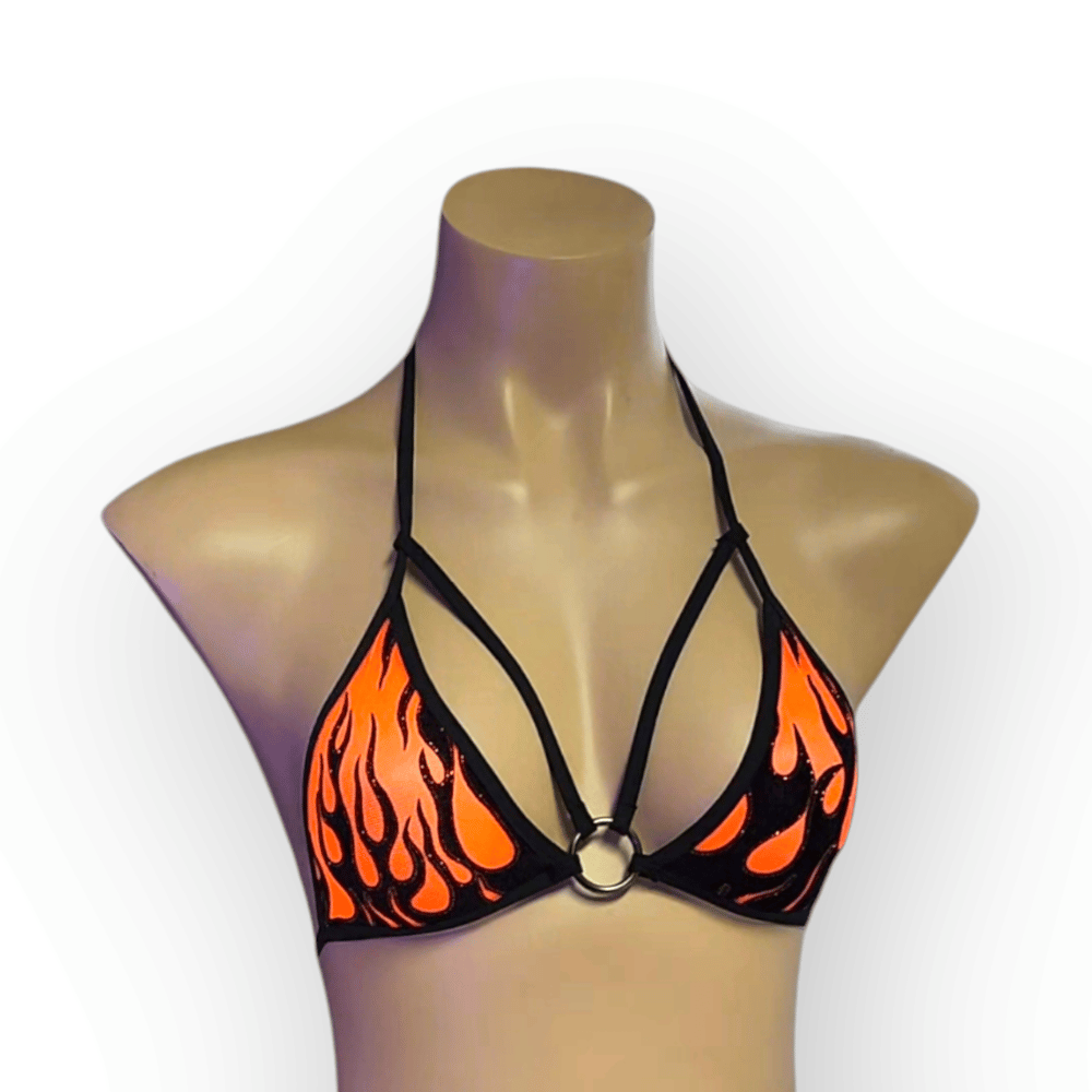 UV Tangerine Flame Strappy Mesh Bikini Top